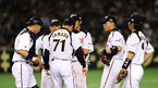 제2회 월드베이스볼클래식(WBC) 1라운드 A조 1,2위 순위결정전 한국-일본 경기가 9일 도쿄돔 구장에서 열려 한국이 선발 봉중근의 5⅓이닝 호투와 중간계투진의 완벽한 투구, 김태균의 적시타로 1-0으로 승리 일본에 콜드게임 패배의 빚을 갚았다. 9회초 1사 1,2루의 위기에 처한 일본 선수들이 마운드에 모여 있다./도쿄돔=김영민...