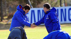 오는 4월 1일 서울월드컵구장에서 열리는 북한과의 2010 남아공월드컵 아시아 최종예선 5차전을 앞두고 태극전사들이 26일 파주 NFC에 소집됐다. 대표팀은 이에 앞서 28일 수원 월드컵구장에서 이라크와 평가전을 치른다. 훈련을 마치고 이운재가 선수들과 얘기를 나누고 있다./파주=손용호 기자spjj@osen.co.kr