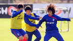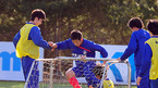 오는 4월 1일 서울월드컵구장에서 열리는 북한과의 2010 남아공월드컵 아시아 최종예선 5차전을 앞두고 태극전사들이 26일 파주 NFC에 소집됐다. 대표팀은 이에 앞서 28일 수원 월드컵구장에서 이라크와 평가전을 치른다. 미니 골대 4개를 놓고 두 팀으로 나누어 한 게임에서 이영표가 골을 넣고 박주영과 좋아하는 가운데 김동진은 엎드려 아쉬운 표정을...