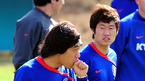 오는 4월 1일 서울월드컵구장에서 열리는 북한과의 2010 남아공월드컵 아시아 최종예선 5차전을 앞두고 태극전사들이 26일 파주 NFC에 소집됐다. 대표팀은 이에 앞서 28일 수원 월드컵구장에서 이라크와 평가전을 치른다. 오후 훈련에서 박지성이 조원희와 조를 이루어 볼 트래핑 훈련을 하고 있다./파주=손용호 기자spjj@osen.co.kr...