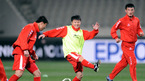 2010 남아공월드컵 최종예선 5차전 한국-북한의 경기를 하루 앞둔 북한 대표팀이 31일 저녁 서울 상암월드컵경기장에서 훈련을 가졌다. 문인국(가운데)이 미니게임을 하며 가볍게 몸을 풀고 있다./상암=김영민 기자ajyoung@osen.co.kr