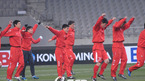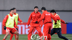 2010 남아공월드컵 최종예선 5차전 한국-북한의 경기를 하루 앞둔 북한 대표팀이 31일 저녁 서울 상암월드컵경기장에서 훈련을 가졌다. 북한 선수들이 취재진쪽을 바라보고 있다./상암=김영민 기자ajyoung@osen.co.kr
