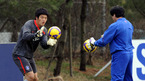 2010 남아공월드컵 최종예선 5차전 한국-북한의 경기를 하루 앞둔 축구대표팀이 31일 오후 파주NFC에서 훈련을 가졌다. 정성룡이 김현태 골키퍼코치와 함께 훈련하고 있다./파주=김영민 기자ajyoung@osen.co.kr 온라인으로...