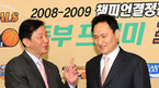 오는 18일부터 열리는 '2008-2009 동부프로미 프로농구' 챔피언결정전 서울 삼성과 전주 KCC 경기를 앞두고 17일 삼성 안준호, KCC 허재 감독이 참석한 가운데 서울 신사동 KBL센터에서 미디어데이 행사를 가졌다. 허재 감독이 안준호 감독의 전주 비빔밥에 대한 지역 비유에 대해 콩나물 국밥이 더 좋다며 화기애애한 분위기로...