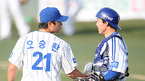 '2009 CJ 마구마구 프로야구' 삼성 라이온즈와 두산 베어스의 경기가 19일 대구 구장에서 벌어졌다. 이 날 경기에서 삼성은 신명철의 맹활약에 힘입어 두산에 5-4 승리를 거두며 2연승을 내달렸다. 경기를 마치고 마무리 오승환 투수와 현재윤 포수가 기쁨을 나누고 있다./대구=민경훈 기자 rumi@osen.co.kr
