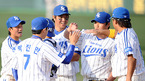 '2009 CJ 마구마구 프로야구' 삼성 라이온즈와 두산 베어스의 경기가 19일 대구 구장에서 벌어졌다. 이 날 경기에서 삼성은 신명철의 맹활약에 힘입어 두산에 5-4 승리를 거두며 2연승을 내달렸다. 경기를 마치고 삼성 선수들이 기쁨을 나누고 있다./대구=민경훈 기자 rumi@osen.co.kr