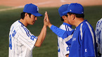'2009 CJ 마구마구 프로야구' 삼성 라이온즈와 두산 베어스의 경기가 19일 대구 구장에서 벌어졌다. 이 날 경기에서 삼성은 신명철의 맹활약에 힘입어 두산에 5-4 승리를 거두며 2연승을 내달렸다. 경기를 마치고 삼성 신명철과 선동열 감독이 하이파이브를 하고 있다./대구=민경훈 기자 rumi@osen.co.kr