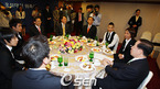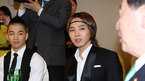 인기 남성 5인조 그룹 ‘빅뱅(Big Bang)’의 법무부 홍보대사 위촉식이 18일 오후 양재동 서울교육문화회관에서 열렸다. 앞으로 빅뱅은 법질서 캠페인과 각종 문화행사에 동참하여 우리사회에 법질서의 소중함을 널리 알리는 민간 전도사로 활동하게 될 예정이다. 빅뱅의 T.O.P이 장관과의 대화자리에서 물을 마시고 있다./민경훈 기자...