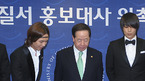 인기 남성 5인조 그룹 ‘빅뱅(Big Bang)’의 법무부 홍보대사 위촉식이 18일 오후 양재동 서울교육문화회관에서 열렸다. 앞으로 빅뱅은 법질서 캠페인과 각종 문화행사에 동참하여 우리사회에 법질서의 소중함을 널리 알리는 민간 전도사로 활동하게 될 예정이다. 빅뱅의 T.O.P이 위촉식 전 김경한 법무부장관과 대화하는 자리를 갖고...
