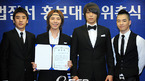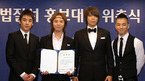 인기 남성 5인조 그룹 ‘빅뱅(Big Bang)’의 법무부 홍보대사 위촉식이 18일 오후 양재동 서울교육문화회관에서 열렸다. 앞으로 빅뱅은 법질서 캠페인과 각종 문화행사에 동참하여 우리사회에 법질서의 소중함을 널리 알리는 민간 전도사로 활동하게 될 예정이다. 빅뱅의 G-드래곤이 김경한 법무부장관에게 홍보대사 위촉장을 받고 있다./민경훈 기자...