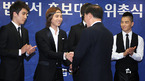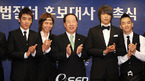 인기 남성 5인조 그룹 ‘빅뱅(Big Bang)’의 법무부 홍보대사 위촉식이 18일 오후 양재동 서울교육문화회관에서 열렸다. 앞으로 빅뱅은 법질서 캠페인과 각종 문화행사에 동참하여 우리사회에 법질서의 소중함을 널리 알리는 민간 전도사로 활동하게 될 예정이다. 빅뱅과 김경한 법무부장관이 함께 박수를 치며 포토타임을 갖고 있다./민경훈 기자...