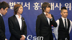 인기 남성 5인조 그룹 ‘빅뱅(Big Bang)’의 법무부 홍보대사 위촉식이 18일 오후 양재동 서울교육문화회관에서 열렸다. 앞으로 빅뱅은 법질서 캠페인과 각종 문화행사에 동참하여 우리사회에 법질서의 소중함을 널리 알리는 민간 전도사로 활동하게 될 예정이다. 빅뱅이 위촉식 중 긴장한 표정을 짓고 있다./민경훈 기자...