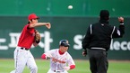 '2009 CJ 마구마구 프로야구' SK 와이번스와 KIA 타이거즈의 경기가 27일 저녁 인천문학구장에서 벌어졌다. 3회초 1사 1루 KIA 홍세완의 직선타를 잡고 넘어진 SK 정근우가 괜찮다는 손짓을 하고 있다./인천=윤민호 기자ymh@osen.co.kr