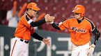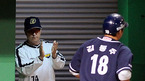 '2009 CJ 마구마구 프로야구' KIA 타이거즈와 두산 베어스 경기가 2일 광주 무등경기장에서 열렸다. 5회초 1사 2루 최준석의 적시타때 2루 주자 김동주 득점을 올리며 덕아웃 김경문 감독의 축하를 받고 있다./광주=김영민 기자ajyoung@osen.co.kr