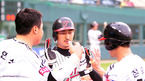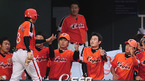 '2009 CJ 마구마구 프로야구' LG 트윈스와 한화 이글스의 경기가 2일 잠실 구장에서 벌어졌다. 3회초 2사 주자1,2루 한화 디아즈의 중전 1타점 적시타때 홈을 밟은 2루 주자 강동우가 덕아웃에서 기쁨을 나누고 있다./잠실=민경훈 기자 rumi@osen.co.kr