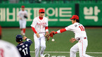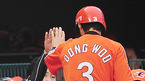 '2009 CJ 마구마구 프로야구' KIA 타이거즈와 두산 베어스 경기가 2일 광주 무등경기장에서 열렸다. 1회초 2사 김현수 좌중월 솔로 홈런을 날리고 김광수 코치의 환영을 받으며 홈인하고 있다./광주=김영민 기자ajyoung@osen.co.kr