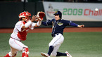 '2009 CJ 마구마구 프로야구' KIA 타이거스와 두산 베어스 경기가 4일 광주 무등경기장에서 열렸다. 8회초 무사 만루 민병헌의 중견수 플라이때 3루 주자 이원석 태그업 홈에서 아웃되고 있다./광주=김영민 기자ajyoung@osen.co.kr