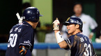 '2009 CJ 마구마구 프로야구' KIA 타이거스와 두산 베어스 경기가 4일 광주 무등경기장에서 열렸다. 6회초 2사 1루 이원석의 적시타때 1루 주자 정수빈 홈까지 쇄도 동점 득점을 올리며 김현수의 환영을 받고 있다./광주=김영민 기자ajyoung@osen.co.kr