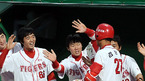 '2009 CJ 마구마구 프로야구' KIA 타이거스와 두산 베어스 경기가 4일 광주 무등경기장에서 열렸다. 4회말 1사 김상현 좌중월 역전 솔로 홈런을 날리고 덕아웃 동료의 환영을 받고 있다./광주=김영민 기자ajyoung@osen.co.kr