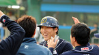 '2009 CJ 마구마구 프로야구' KIA 타이거스와 두산 베어스 경기가 4일 광주 무등경기장에서 열렸다. 3회초 1사 2루 이원석 적시타때 2루 주자 정수빈 선취 득점을 올리며 동료들의 환영을 받고 있다./광주=김영민 기자ajyoung@osen.co.kr
