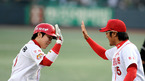 '2009 CJ 마구마구 프로야구' KIA 타이거스와 두산 베어스 경기가 4일 광주 무등경기장에서 열렸다. 3회말 1사 1루 안치홍 투런 홈런을 날리고 최태원 코치의 환영을 받으며 홈인하고 있다./광주=김영민 기자ajyoung@osen.co.kr