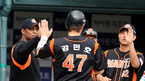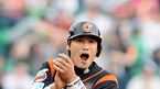 '2009 CJ 마구마구 프로야구' 두산 베어스와 롯데 자이언츠 경기가 6일 잠실경기장에서 열렸다. 2회초 2사 2루 정보명 좌중간 팬스 근처 적시타때 2루 주자 강민호 선취득점을 올리며 로이스터 감독의 환영을 받고 있다./잠실=김영민 기자ajyoung@osen.co.kr