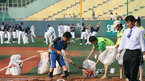 '2009 CJ 마구마구 프로야구' 히어로즈와 두산 베어스 경기가 2일 목동 경기장에서 열리기에 앞서 오전 폭우로 내린 비로 구장 관계자들이 물빼기 작업을 하고 있다./목동=김영민 기자ajyoung@osen.co.kr