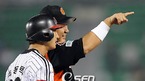 '2009 CJ 마구마구 프로야구' LG 트윈스와 롯데 자이언츠의 경기가 2일 오후 잠실구장에서 벌어졌다. 8회말 2사 1루 상황에서 LG 박용택의 홈런성 타구가 우측 폴대를 약간 비켜 넘어가자 롯데 이대호가 설명하고 있다. 비디오 판독 결과 파울로 선언 되었다./잠실=윤민호 기자ymh@osen.co.kr