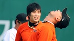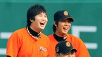'2009 CJ 마구마구 프로야구' 롯데 자이언츠와 SK 와이번스의 경기가 3일 오후 부산 사직구장에서 벌어진다. 경기 전 게임으로 훈련을 하던 롯데 송승준-조정훈-장원준이 즐거워하고 있다./부산=윤민호 기자ymh@osen.co.kr