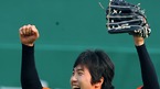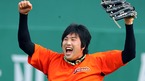 '2009 CJ 마구마구 프로야구' 롯데 자이언츠와 SK 와이번스의 경기가 3일 오후 부산 사직구장에서 벌어진다. 경기 전 게임으로 훈련을 하던 롯데 조정훈이 기뻐하고 있다./부산=윤민호 기자ymh@osen.co.kr