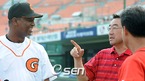 '2009 CJ 마구마구 프로야구' 롯데 자이언츠와 SK 와이번스의 경기가 3일 오후 부산 사직구장에서 벌어진다. 경기 전 롯데 로이스터 감독과 한국야구위원회 경기운영위원 최동원이 즐거운 대화를 나누고 있다./부산=윤민호 기자ymh@osen.co.kr