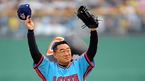 '2009 CJ 마구마구 프로야구' 롯데 자이언츠와 SK 와이번스의 경기가 4일 오후 부산 사직구장에서 벌어졌다. 경기 전 시구행사에 참석한 전 롯데 자이언츠 1984년 우승 주역인 현 한국야구위원회 경기운영위원 최동원이 관중들에게 인사를 하고 있다./부산=윤민호 기자ymh@osen.co.kr