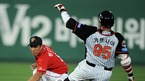 '2009 CJ 마구마구 프로야구' 롯데 자이언츠와 SK 와이번스의 경기가 5일 오후 부산 사직구장에서 벌어졌다. 3-2로 앞서던 8회말 롯데 공격, 좌전 안타를 날리고 2루로 진루하던 선두타자 가르시아가 태그아웃 되자 심판에게 세이프라고 어필하고 있다./부산=윤민호 기자ymh@osen.co.kr