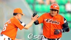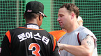 '2009 CJ 마구마구 프로야구' 히어로즈와 롯데 자이언츠의 경기가 10일 목동 구장에서 벌어졌다. 경기 전 히어로즈 브룸바와 롯데 로이스터 감독이 하이파이브를 하고 있다./목동=민경훈 기자 rumi@osen.co.kr