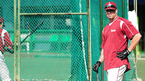 '2009 CJ 마구마구 프로야구' 히어로즈와 롯데 자이언츠의 경기가 10일 목동 구장에서 벌어졌다. 경기 전 히어로즈 브룸바가 자신의 아들 케이든(6세)의 타격 연습을 주시하고 있다./목동=민경훈 기자 rumi@osen.co.kr