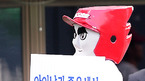 2009 CJ 마구마구 프로야구' 히어로즈와 롯데 자이언츠의 경기가 10일 목동 구장에서 벌어질 예정인 가운데 경기전 히어로즈 턱돌이가 '아이낳기 좋은세상 운동본부' 들고 있다./목동=민경훈 기자 rumi@osen.co.kr