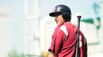 '2009 CJ 마구마구 프로야구' 히어로즈와 롯데 자이언츠의 경기가 10일 목동 구장에서 벌어졌다. 경기 전 연습 중 히어로즈 황재균이 엉덩이에 배트를 꼽고 포즈를 취하고 있다./목동=민경훈 기자 rumi@osen.co.kr