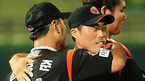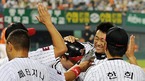 '2009 CJ 마구마구 프로야구' LG 트윈스와 한화 이글스의 경기가 10일 오후 잠실구장에서 벌어졌다. 3-3로 맞서던 8회말 1사 1루 상황에서 역전 투런 홈런을 날린 LG 박병호가 축하를 받고 있다./잠실=윤민호 기자ymh@osen.co.kr