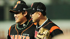 2009 CJ 마구마구 프로야구' 히어로즈와 롯데 자이언츠의 경기가 10일 목동 구장에서 벌어졌다. 이 날 경기에서 롯데는 홍성흔의 스리런 홈런과 선발 송승준의 완봉승 호투에 힘입어 히어로즈에게 3-0으로 승리를 거뒀다. 이 날 완봉승으로 송승준은 3연속 완봉승의 기록을 달성했다. 경기를 마치고 3연속 완봉승을 거둔 롯데 송승준이 조성환과...