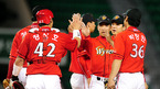 2009 프로야구 LG 트윈스와 SK 와이번즈의 경기가 16일 잠실야구장에서 벌어졌다. 좌완 최고를 다투는 LG 봉중근과 SK 김광현의 맞대결서 김광현이 2연승을 하며 팀의 연패탈출에 힘을 보탰다. SK는 1회초만 상대팀 LG의 기록되지 않은 실책에 편승 6득점을 하며 10-4의 대승을 거둬 7연패 후 귀중한 승리를 챙겼다. SK 선수들이...