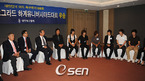 지난 11일 세르비아에서 열린 하계 유니버시아드에서 우승을 한 여자 축구대표팀 축하오찬이 16일 낮 프라자 호텔 4층 메이플룸에서 열렸다. 대한축구협회 정몽준 명예회장과 선수들이 파이팅을 외치며 포토타임을 갖고 있다./김영민 기자ajyoung@osen.co.kr