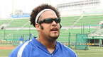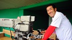 '2009 CJ 마구마구 프로야구' SK 와이번스와 롯데 자이언츠 경기가 17일 오후 인천문학구장에서 벌어질 예정이였으나 비로 인해 취소되었다. 덕아웃에서 대기하던 SK 카도쿠라가 중계카메라를 만지며 즐거워하고 있다./인천=윤민호 기자ymh@osen.co.kr
