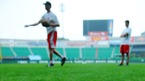 '2009 CJ 마구마구 프로야구' SK 와이번스와 롯데 자이언츠 경기가 17일 오후 인천문학구장에서 벌어질 예정이였으나 비로 인해 취소되었다. 문학구장에 비가 내리는 가운데 SK 선수들이 아쉬운듯 몸을 풀고 있다./인천=윤민호 기자ymh@osen.co.kr