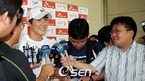 '마린보이' 박태환이 올해 가장 큰 수영대회인 로마 세계선수권이 벌어지는 이탈리아로 17일 오후 인천국제공항을 통해 출국했다. 박태환은 27일 오전 1시 자유형 400m 결승, 29일 오전 1시 200m 결승, 8월 3일 오전 3시 1,500m 결승에 각각 나서 메달에 도전한다. 박태환이 팬에게 사인을 해주고...