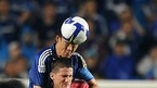 '2009 K리그' 수원 삼성과 대전 시티즌의 경기가 18일 저녁 수원월드컵경기장에서 벌어졌다. 후반 수원 곽희주와 대전 스테반이 공중 볼다툼을 벌이고 있다./수원=윤민호 기자ymh@osen.co.kr 온라인으로...