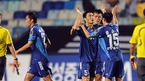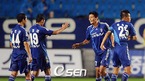 '2009 K리그' 수원 삼성과 대전 시티즌의 경기가 18일 저녁 수원월드컵경기장에서 벌어졌다. 전반 선취골을 터트린 수원 하태균이 동료의 축하를 받고 있다./수원=윤민호 기자ymh@osen.co.kr 온라인으로...