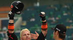 '2009 CJ 마구마구 프로야구' SK 와이번스와 롯데 자이언츠 경기가 18일 인천 문학 경기장에서 열렸다. 5회말 2사 1루 박재상 우월투런 홈런을 날리고 홈인 덕아웃 동료의 환영을 받고 있다./인천=김영민 기자ajyoung@osen.co.