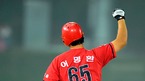 '2009 CJ 마구마구 프로야구' 퓨처스 올스타전 경기가 19일 오후 강원도 춘천의암구장에서 열렸다. 5-4로 앞서던 9회초 남부 공격, 2사 1루 상황에서 투런 홈런을 날린 이명환이 홈을 밟고 있다./춘천=윤민호 기자ymh@osen.co.kr