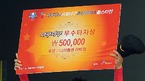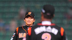 '2009 CJ 마구마구 프로야구' 퓨처스 올스타전 경기가 19일 오후 강원도 춘천의암구장에서 열렸다. 4-4로 맞선 9회 터진 롯데 오장훈의 결승 우전 적시타와 곧바로 터진 KIA 이명환의 쐐기 좌월 투런을 앞세워 7-4로 남부가 승리를 거뒀다. 감투상을 받은 북부 박건우가 박수를 치고 있다./춘천=윤민호...