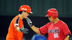 '2009 CJ 마구마구 프로야구' 퓨처스 올스타전 경기가 19일 오후 강원도 춘천의암구장에서 열렸다. 4-4로 맞선 9회 터진 롯데 오장훈의 결승 우전 적시타와 곧바로 터진 KIA 이명환의 쐐기 좌월 투런을 앞세워 7-4로 남부가 승리를 거뒀다. MVP로 선정된 남부 이명환이 환호하고 있다./춘천=윤민호...